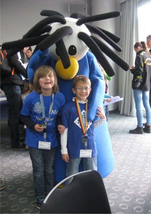 Das sportliche Hauptziel von Max und Jan lautete, besser abzuschneiden als 2015. Das gelang beiden mit Bravour. Jan holte in diesem Jahr 3,5/7, also die berühmten 50%. Eine deutliche Steigerung gegenüber dem Vorjahr, als Jan 2 Punkte holte. Damit wurde er 38. Und er darf im kommenden Jahr erneut Kika spielen während Max 2017 zu alt sein wird. Max startete als Erster der Setzliste überraschend mit einer Niederlage ins Turnier. Umso besser kämpfte er sich dann Runde für Runde mit 5 Siegen in Folge zurück an Brett 1 in der siebten und letzten Runde. Dort kam es im Duell mit dem Turniersieger Marvin Kieselbach zu einem ausgekämpften Remis mit König gegen König und Läufer in der Schlussstellung. Das bedeutete für Max 5,5/7 und Platz 3 in der Abschlusstabelle. Eine großartige Leistung insbesondere nach der Auftaktniederlage. Bronzemedaille in Form eines neu geschaffenen Chessy-Pokals.